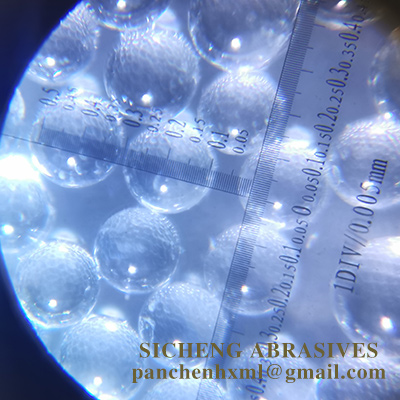 Hạt thủy tinh là chất mài mòn có thể tái sử dụng và chủ yếu được sử dụng trong các phòng phun cát và tủ phun cát. Hạt thủy tinh không chứa sắt tự do gây ăn mòn trên bề mặt kim loại không chứa sắt, do đó rất thích hợp để sử dụng trên tất cả các loại kim loại. Vì không tạo ra vết mài mòn, nên nó chủ yếu được sử dụng để làm sạch bề mặt mà không làm nhám hoặc để đánh bóng bề mặt. Hạt thủy tinh cũng có thể được phun bằng khí nén.